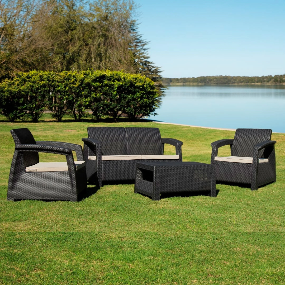 Con una atractiva textura ratán y un diseño sumamente confortable, este juego está fabricado con materiales de la más alta calidad que aseguran una gran durabilidad y resistencia a las inclemencias del tiempo. No requiere mantenimiento.