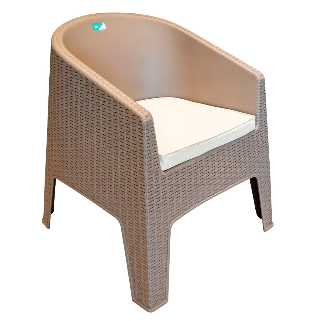 Sillón plastico estilo rattan, apilable, muy comodo ideal para balcones o espacios al aire libre.