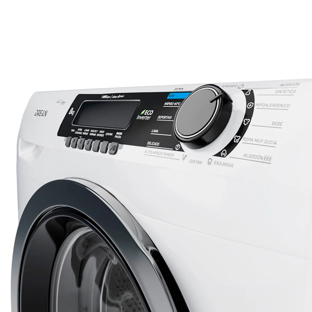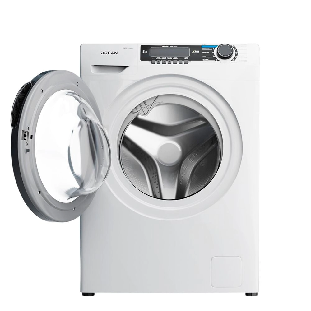 Lavarropas de carga frontal con tecnología Ecoinverter. Su capacidad de lavado es de 8 Kg y su velocidad de centrifugado es regulable hasta 1400 RPM. Color blanco. Eficiencia energética A. Lavado europeo. 13 programas de lavado. Display LED y perilla. Carga autoadaptativa, función autobalance y bloqueo de puerta. Incluye inicio diferido y extra enjuague. Tambor de acero inoxidable. Cúpula de vidrio. Sus programas incluyen lavado rápido 30?, ECO, hipoalergénico. Opción vuelvo y termino.