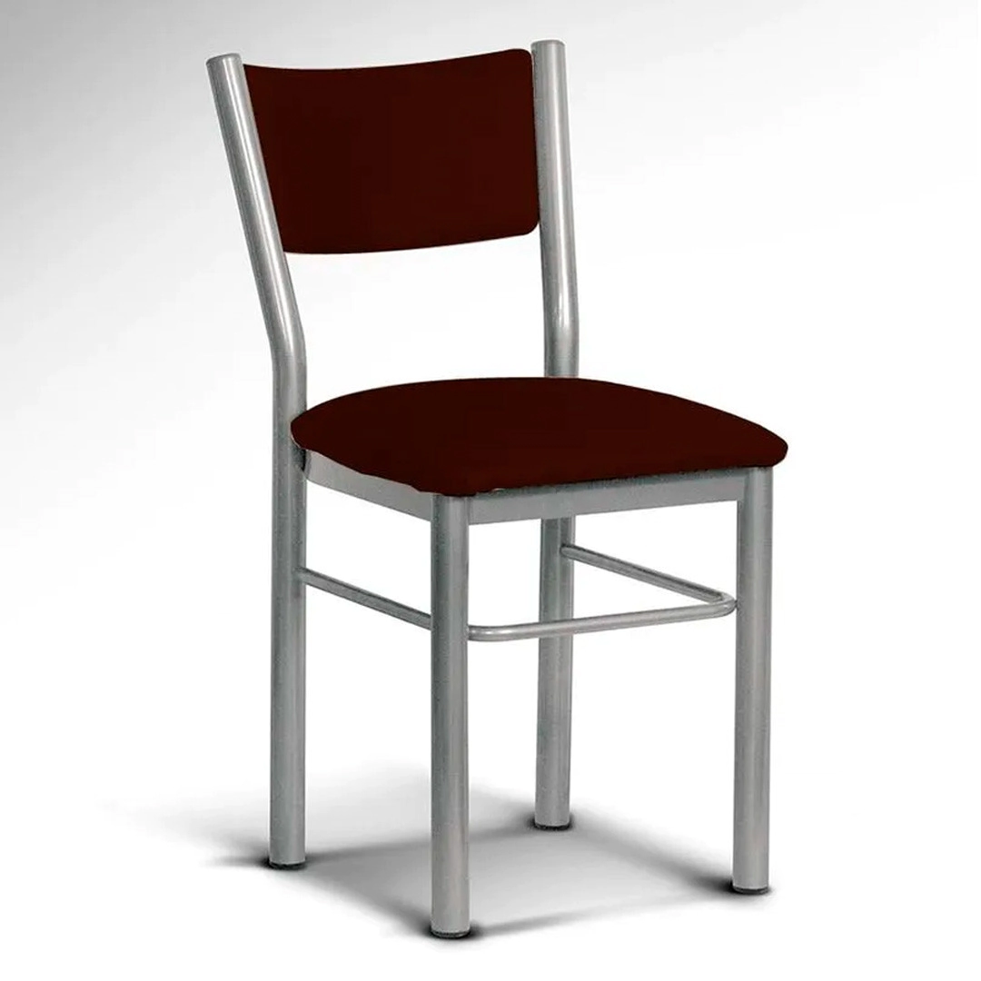 Silla Dakar. Estructura: caño epoxi platino. Asiento: ecuero color tiza. Respaldo : Melamina color Wengue.