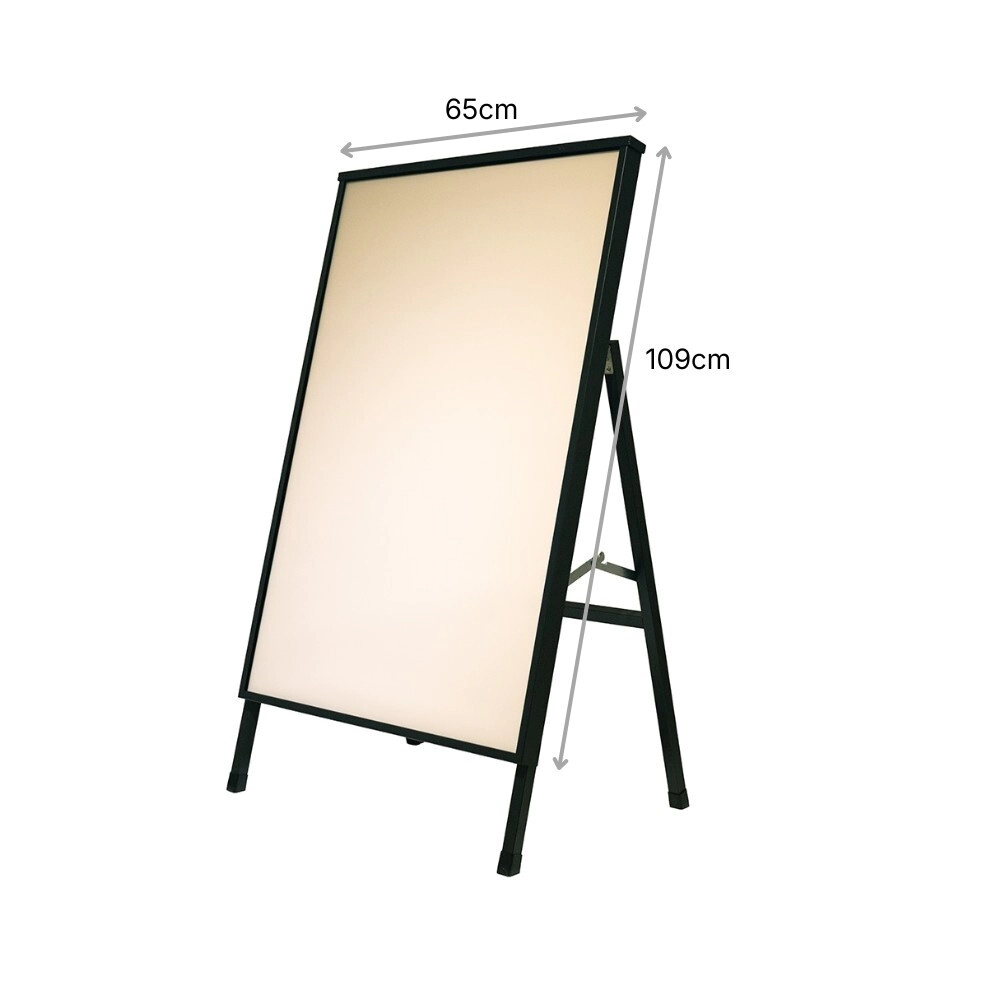 Cartel con pie y luz LED ideal para destacar tus gráficas, promociones o mensajes de forma llamativa. Su iluminación realza los colores y detalles, logrando mayor visibilidad y atracción. Perfecto para locales, vidrieras y  eventos. Diseño moderno, práctico y fácil de usar.